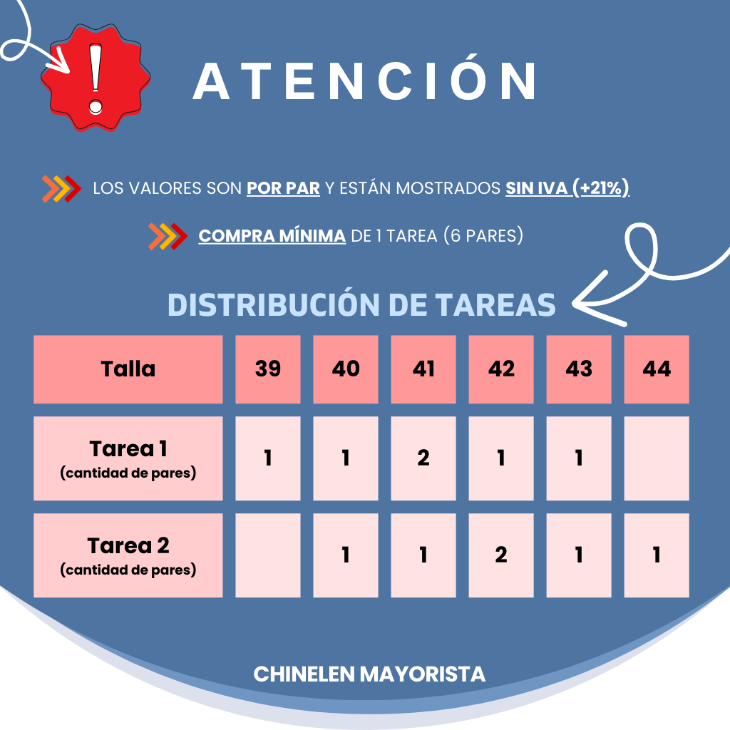 Tarea 1: Incluye 6 pares (39,40,41,41,42,43)